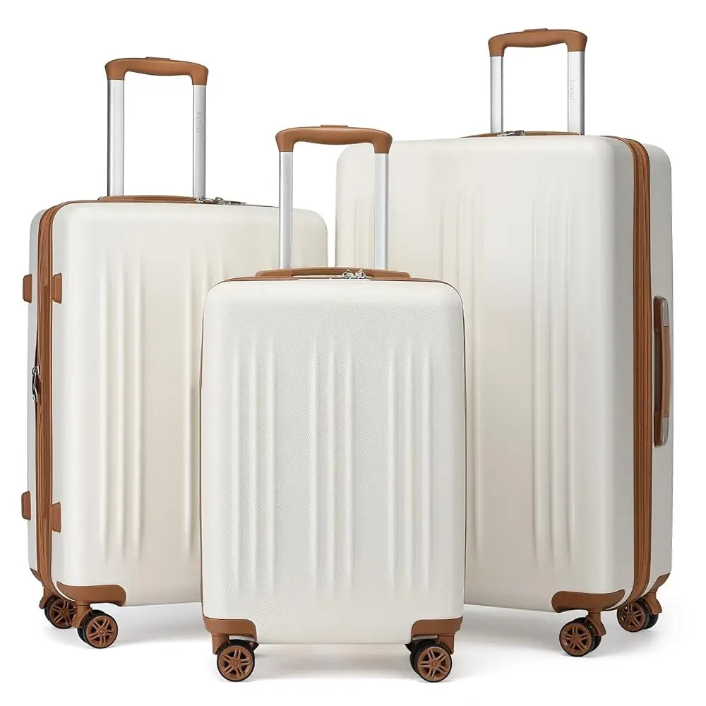Set of white suitcases with black handles and wheels on a white background, featuring KONO branding.