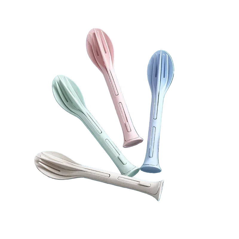 4PCS Portable Wheat Straw Tableware Set – Eco-Friendly Travel Cutlery for Camping, Picnic & Everyday...