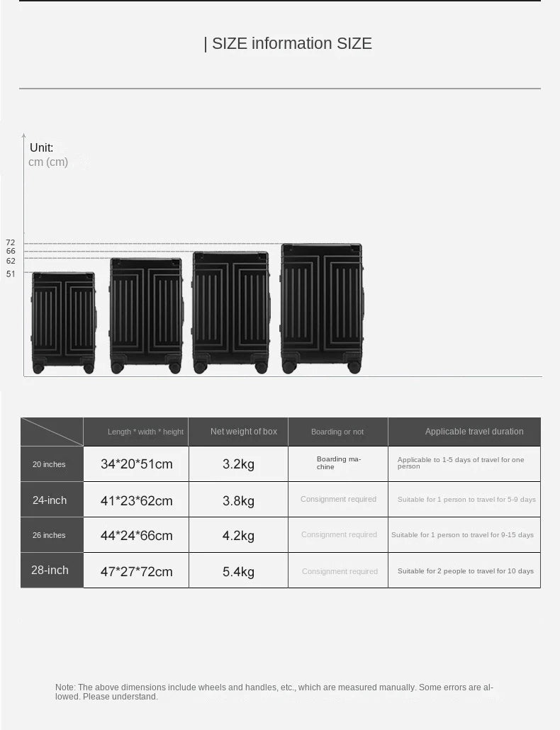 Make every journey smooth, secure, and stylish with our premium-grade aluminum alloy suitcase collection. Designed for seasoned travelers, this set offers sizes ranging from compact carry-ons to spacious 30" checked luggage—perfect for short getaways or extended stays.