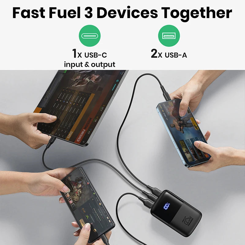 Triple Device Charging – 3 output ports (USB-A & USB-C) for charging multiple devices simultaneously