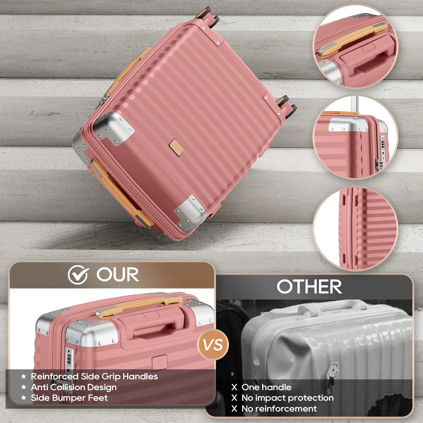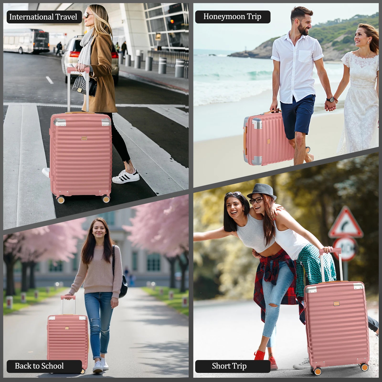 Three Convenient Sizes – 20" carry-on, 24" medium, and 28" large checked luggage for flexible packing.
