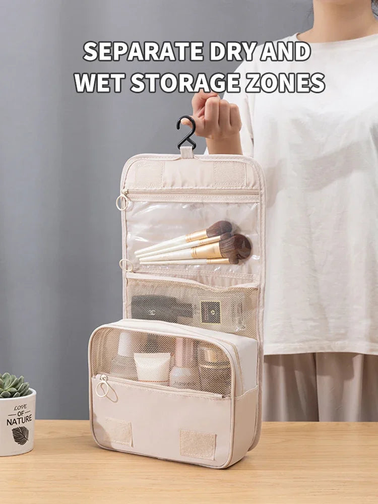 Dry & Wet Separation Travel Makeup Bag – Large Capacity, Multi-Functional, Washable Hanging Organizer