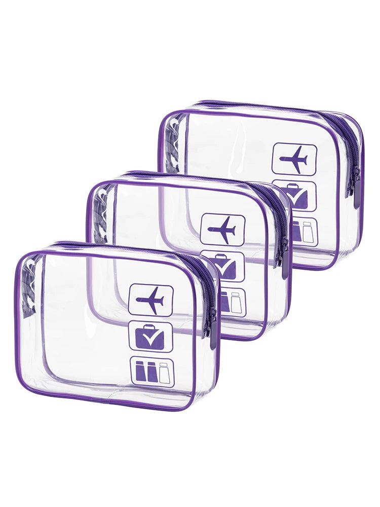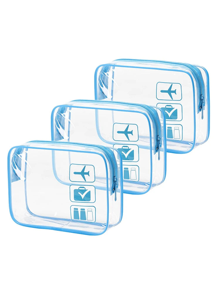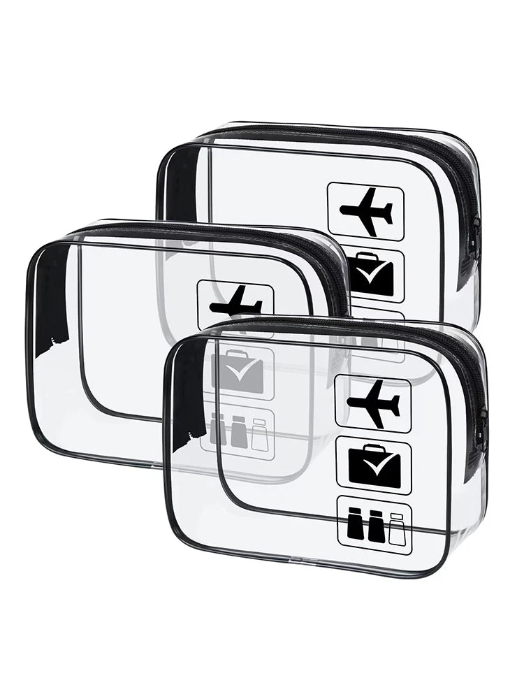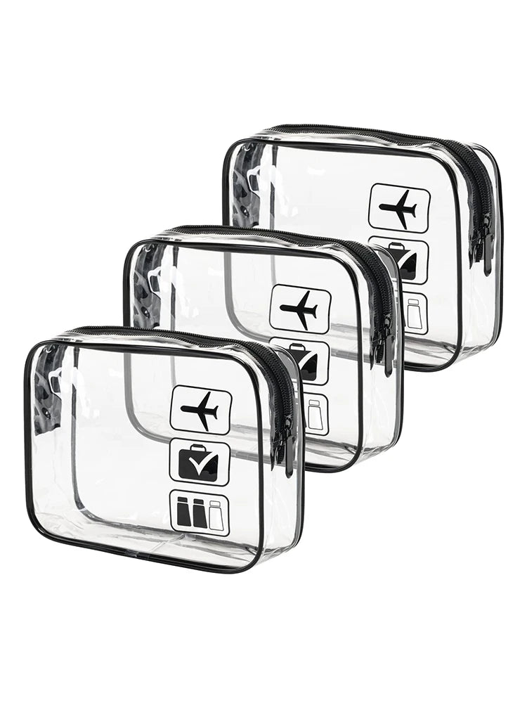 Simplify your travel routine with this 3-piece set of transparent cosmetic pouches. Designed for convenience and compliance, these toiletry bags are TSA-approved and perfect for carrying liquids, cosmetics, and personal items through airport security with ease.