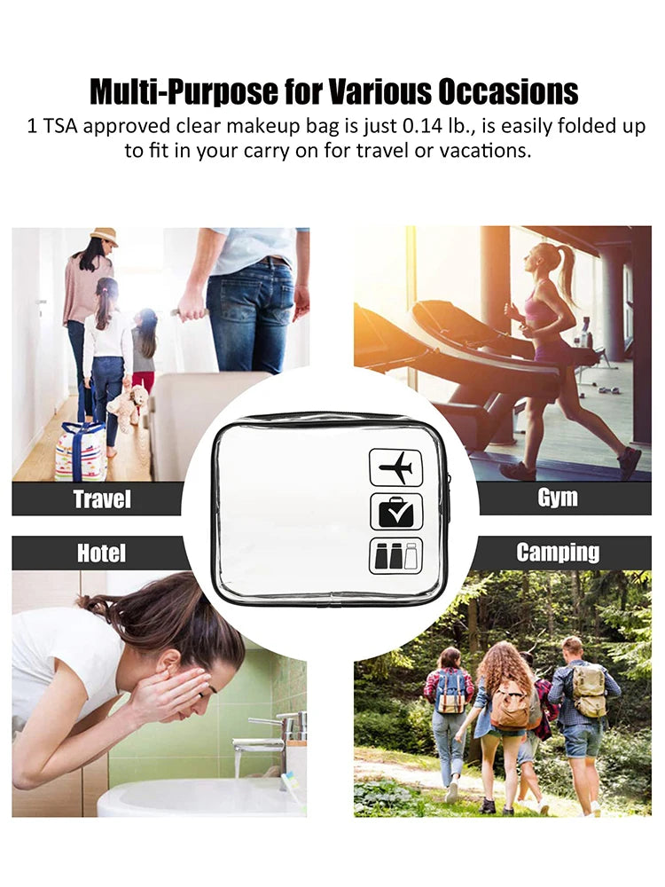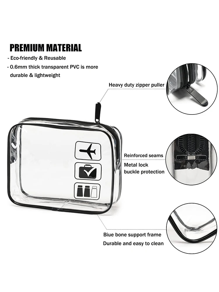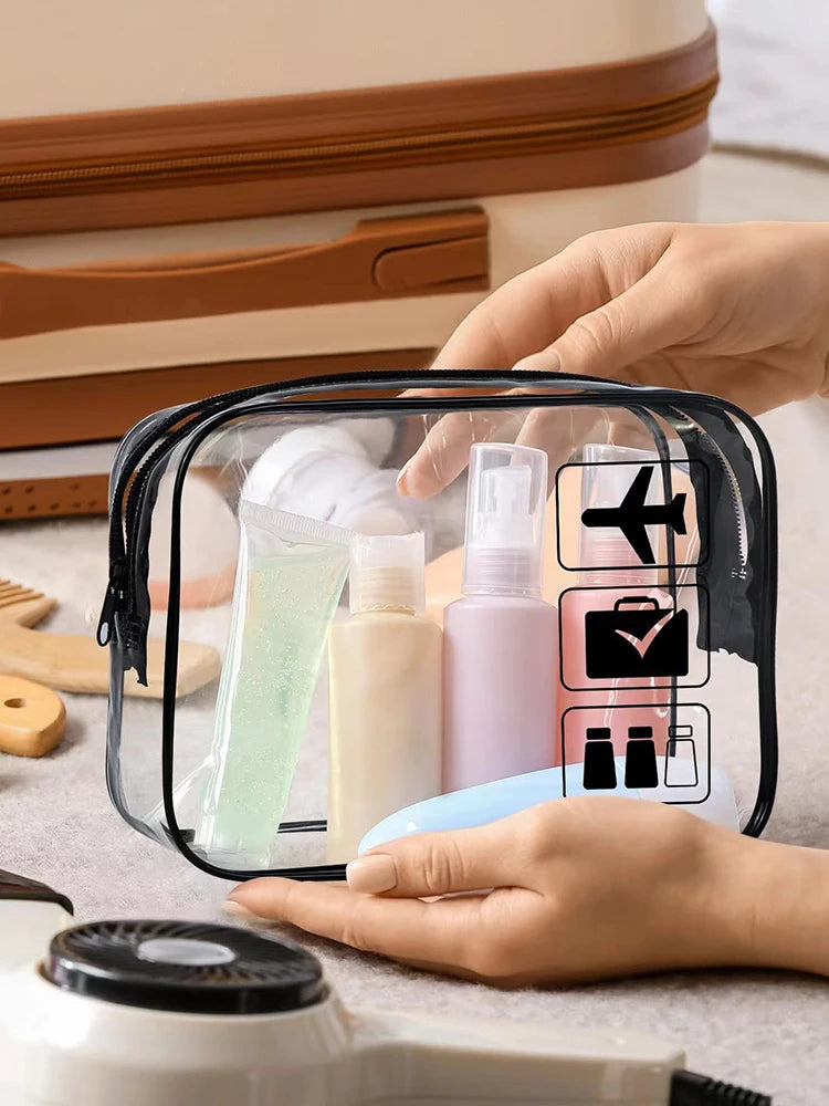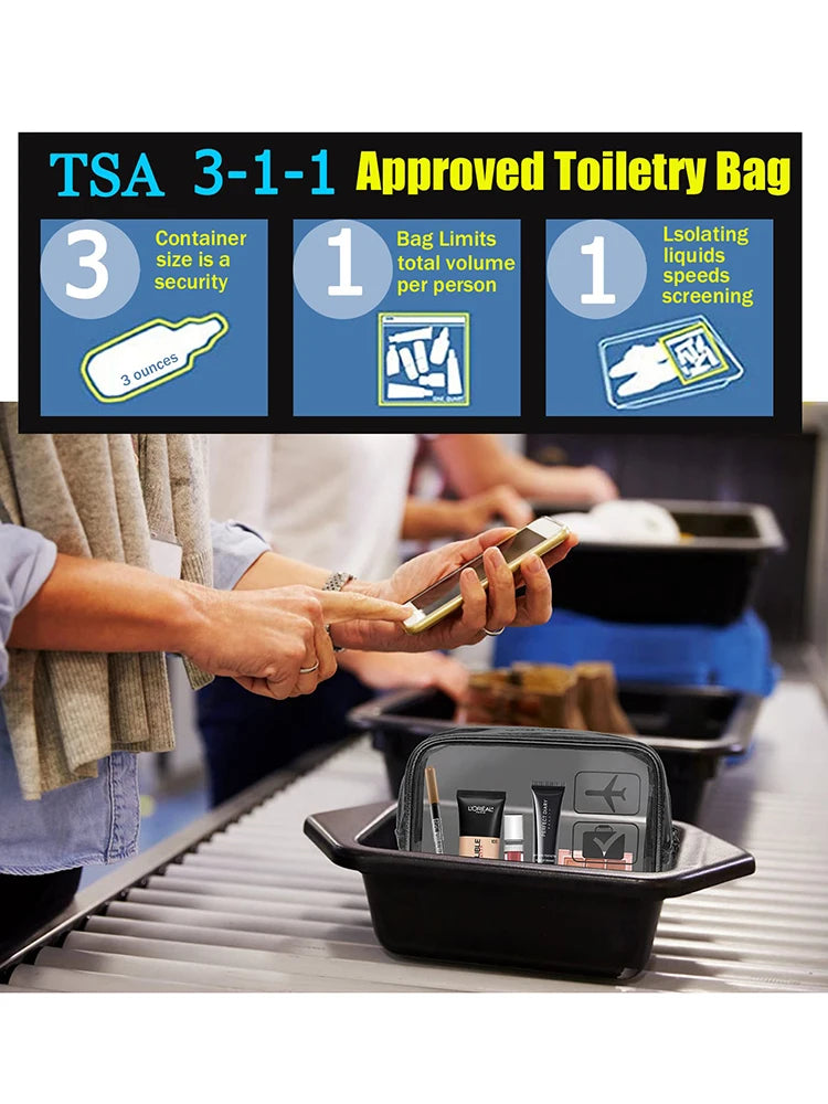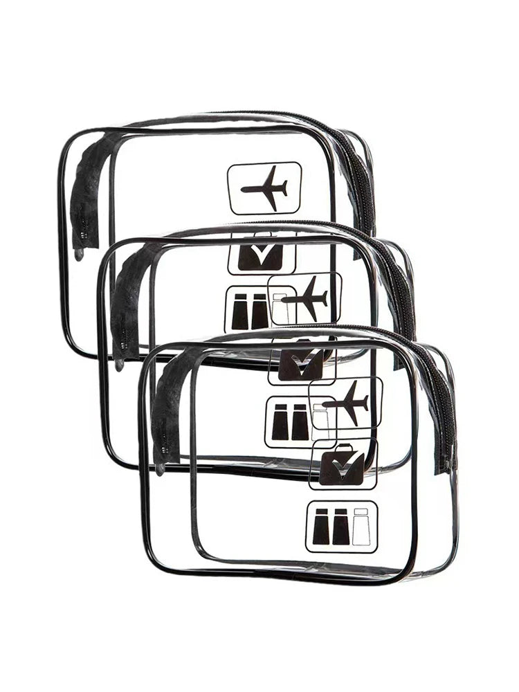 Simplify your travel routine with this 3-piece set of transparent cosmetic pouches. Designed for convenience and compliance, these toiletry bags are TSA-approved and perfect for carrying liquids, cosmetics, and personal items through airport security with ease.