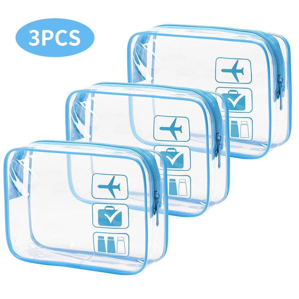 Cosmetic Pouch 3 Pcs – Clear Toiletry Travel Bags (TSA Approved)