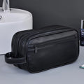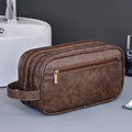 Double-Layer PU Leather Toiletry Bag for Men – Water-Resistant Travel Shaving & Cosmetic Organizer