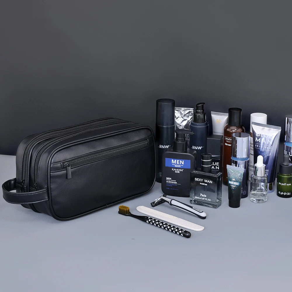 Elevate your travel experience with this sleek and spacious Double-Layer Toiletry Bag for Men. Crafted from high-quality PU leather, it combines rugged durability with refined style—perfect for the modern traveler, professional, or gym-goer.
