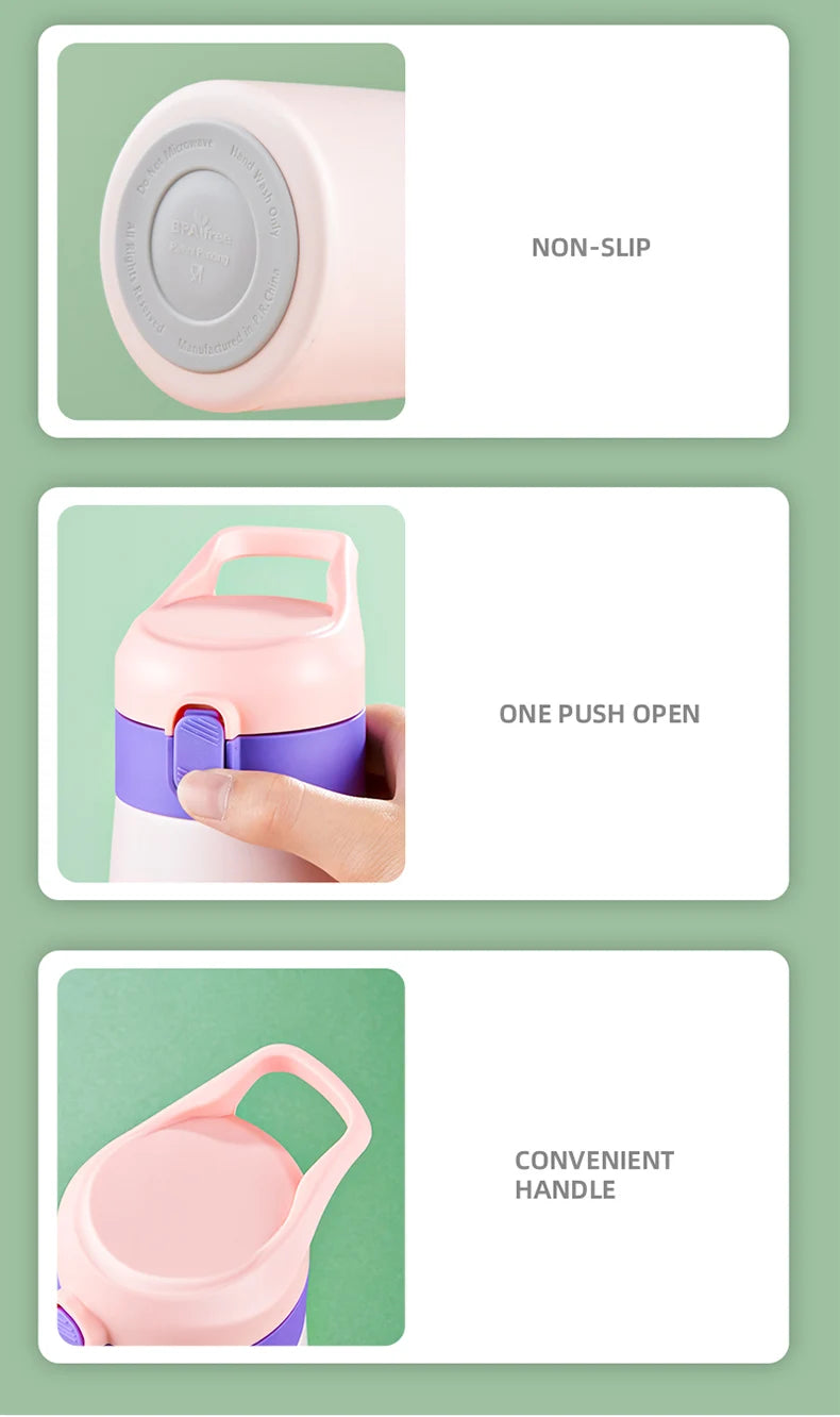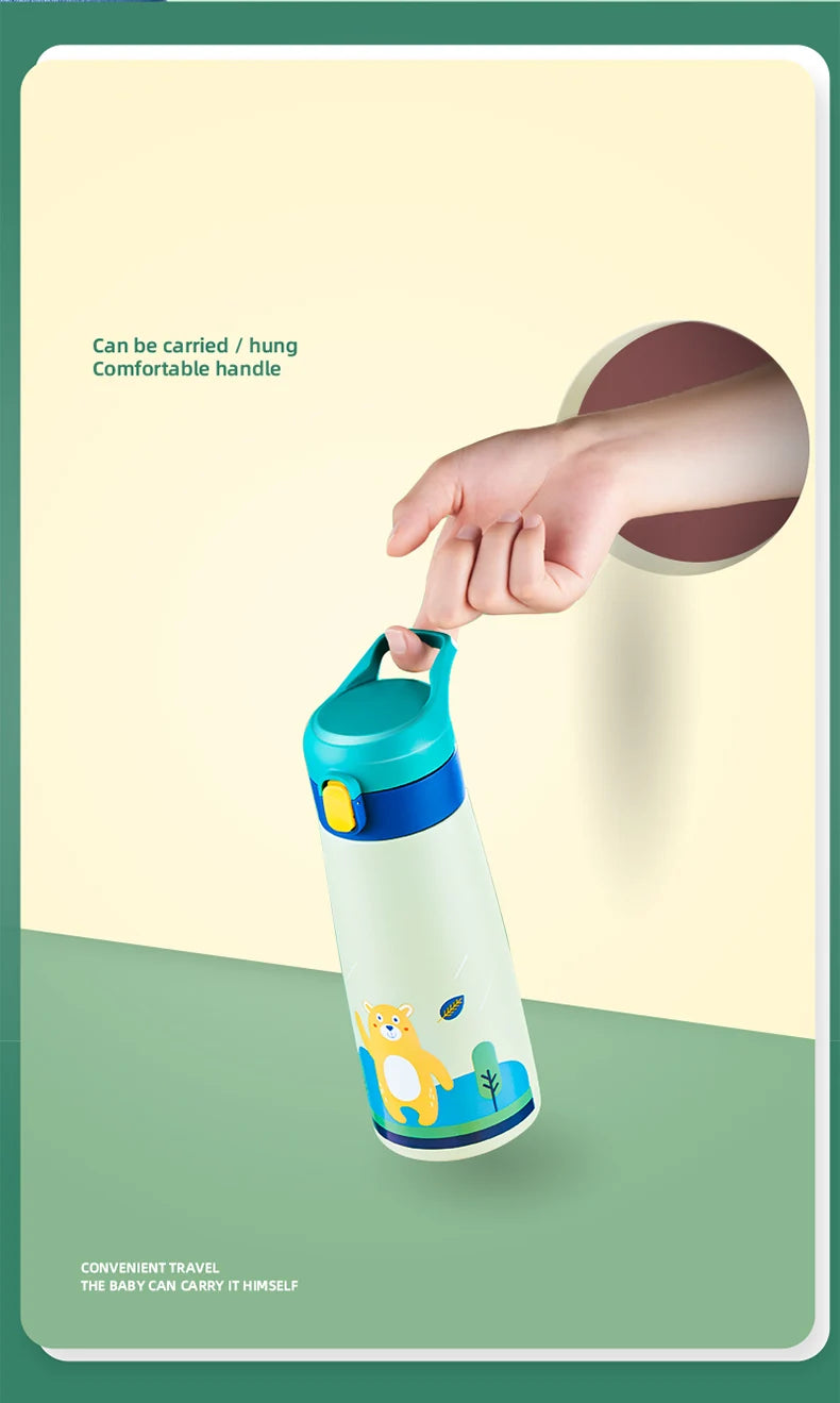 Featuring a cute cartoon design, this thermal water bottle comes with a portable carry case, making it fun, safe, and convenient for children to take anywhere—school, trips, picnics, or outdoor adventures.