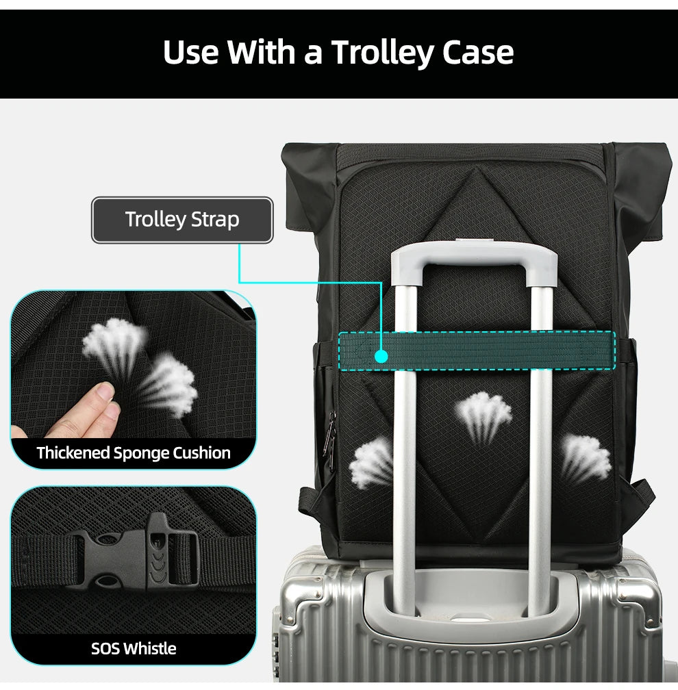 Made from premium waterproof fabric, it protects your belongings from unexpected weather, while its spacious expandable compartments provide organized storage for laptops, clothes, gadgets, and accessories. With its ergonomic design and padded straps, carrying comfort is guaranteed even on long journeys.