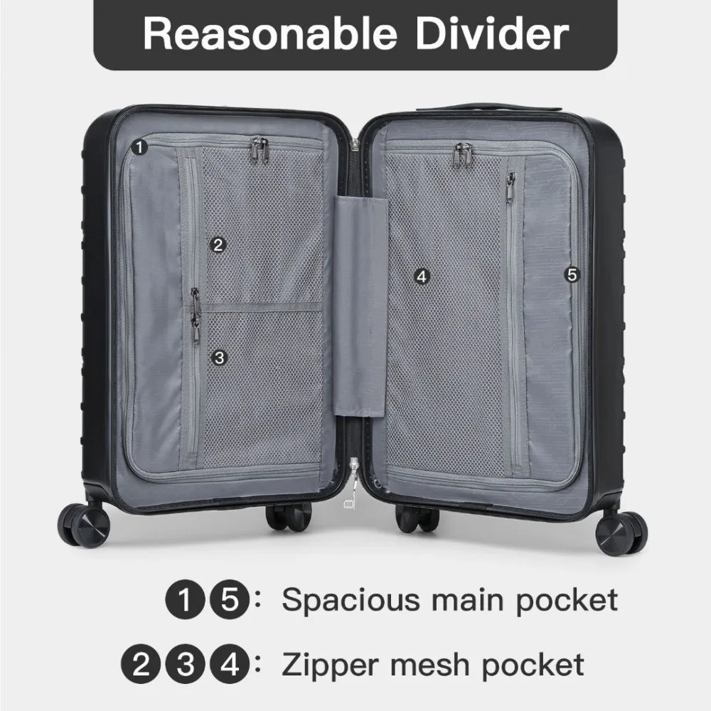 With its airline-approved 20-inch size, this carry-on fits in most overhead compartments, making it the perfect choice for business travel, weekend getaways, and international flights. Equipped with 360° spinner wheels and an adjustable telescopic handle, it offers effortless maneuverability and comfort on the go.
