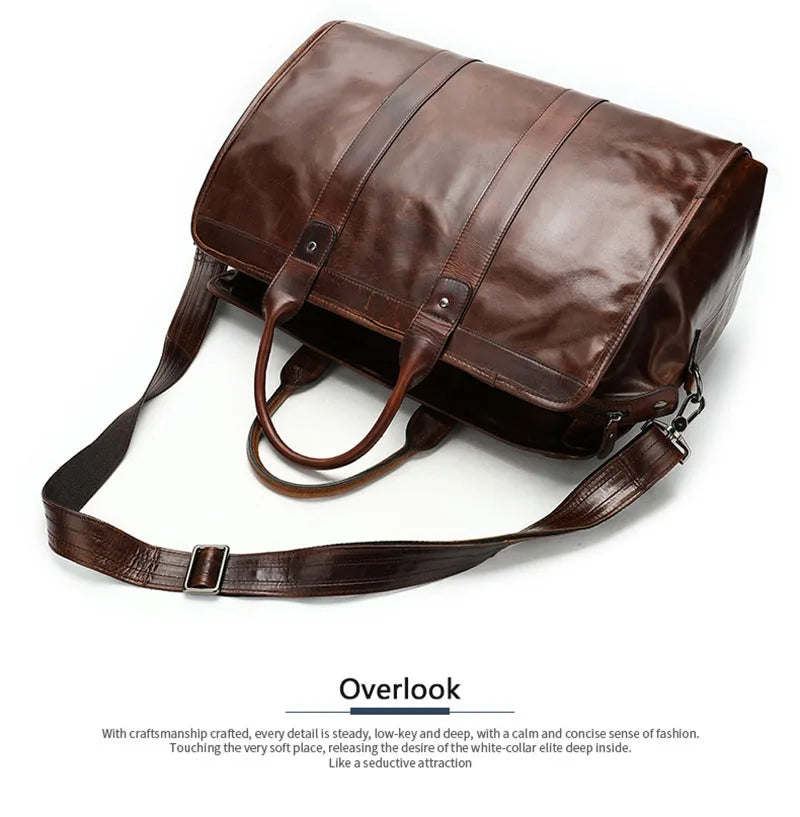 Genuine Leather Travel Bag – Unisex Cowskin Weekend Tote & Large Duffle Hand Luggage