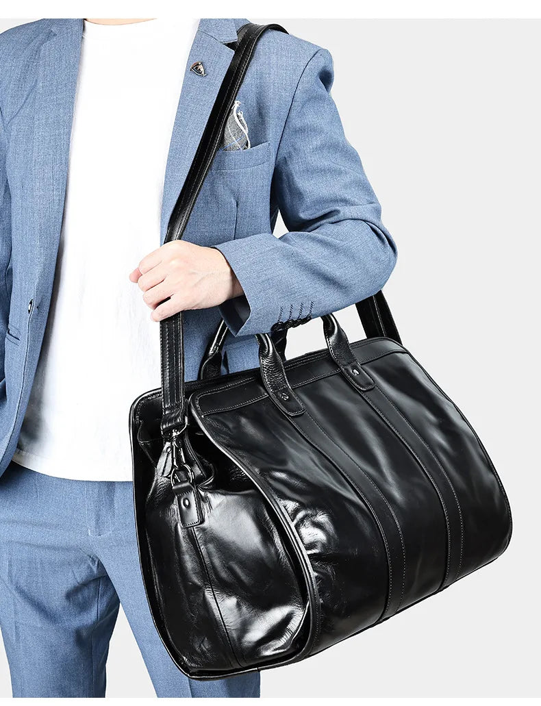 Perfect for weekend getaways, business trips, or daily use, the spacious interior easily accommodates clothing, shoes, and accessories. With its sturdy handles and detachable shoulder strap, this large leather handbag combines comfort with sophistication, making it a must-have for stylish travelers.
