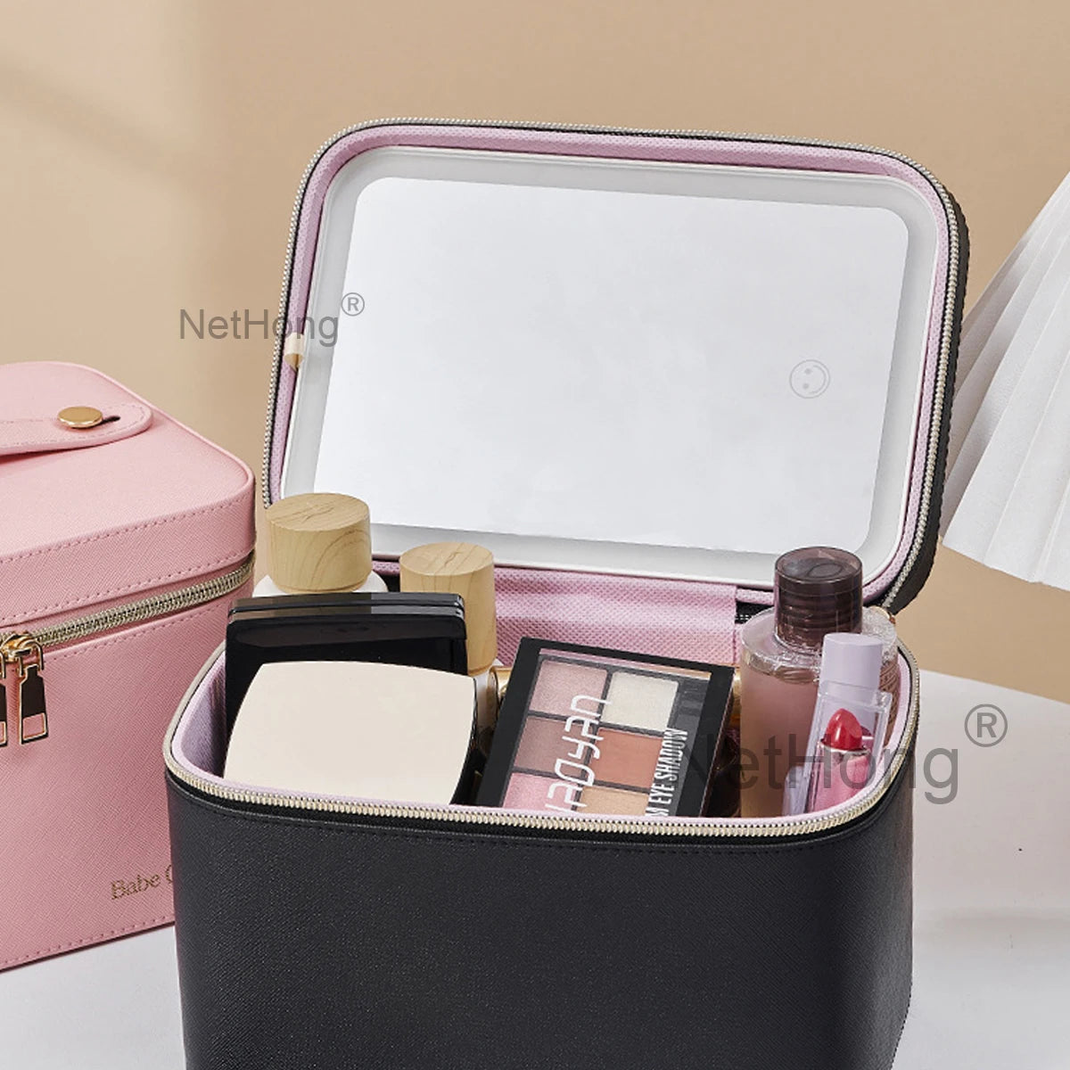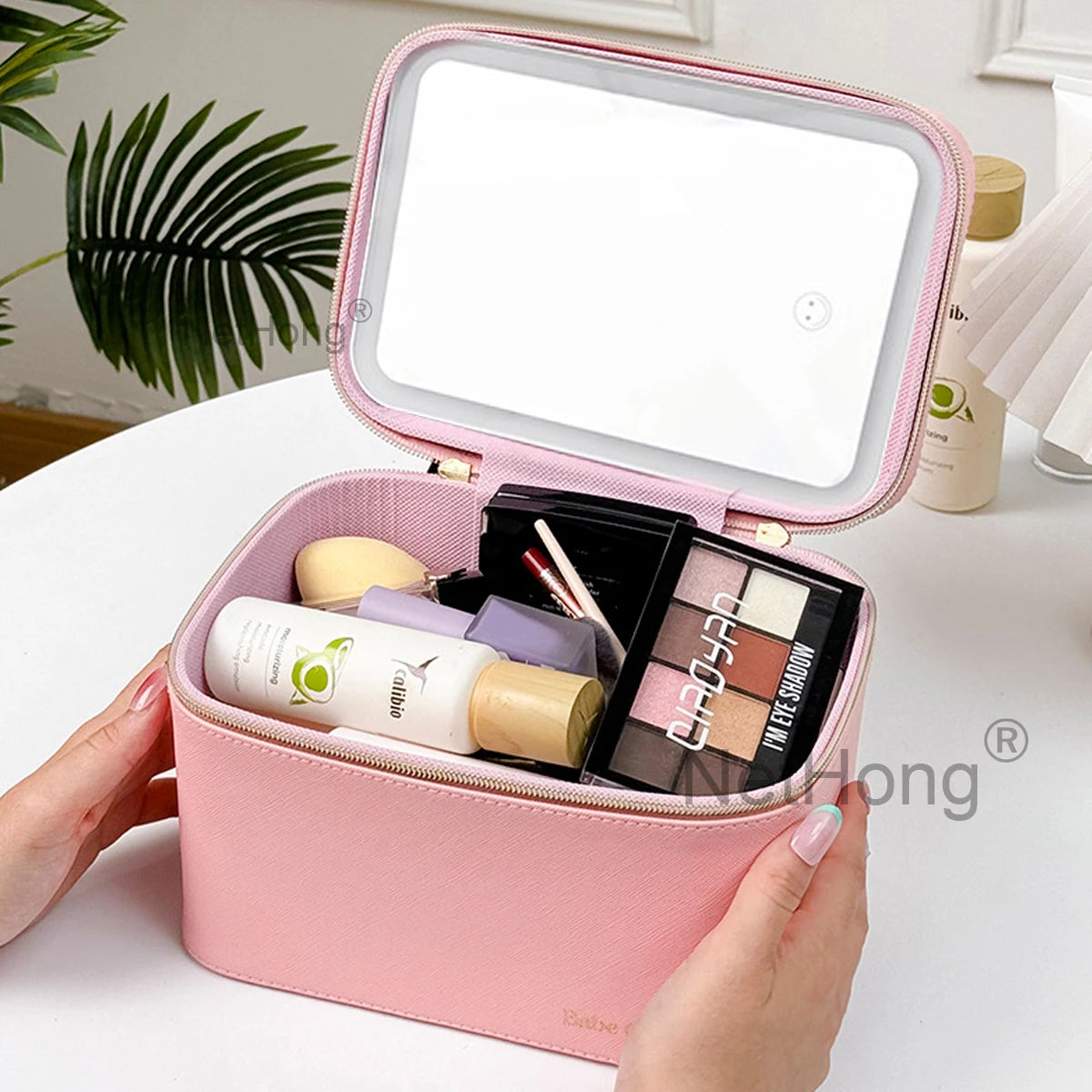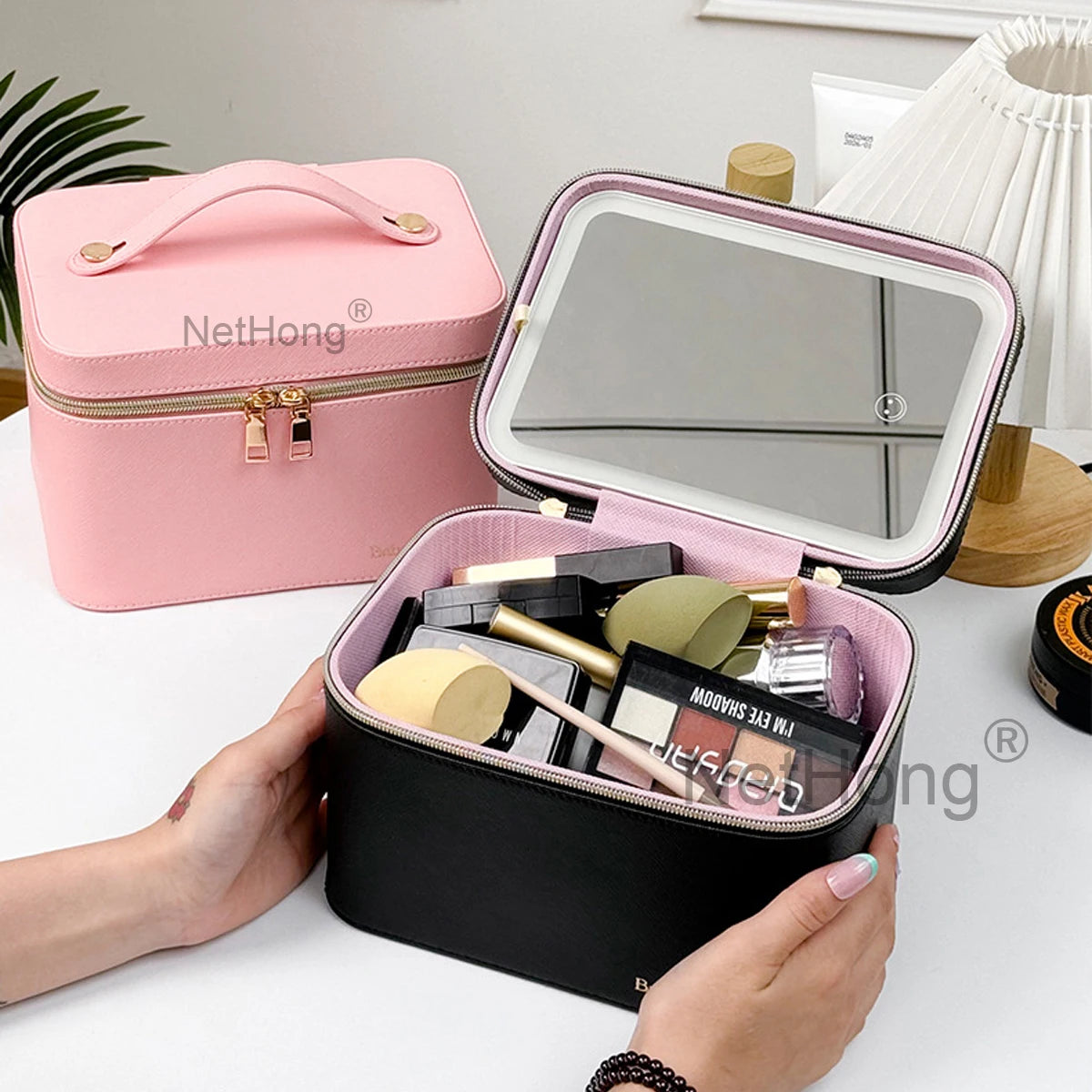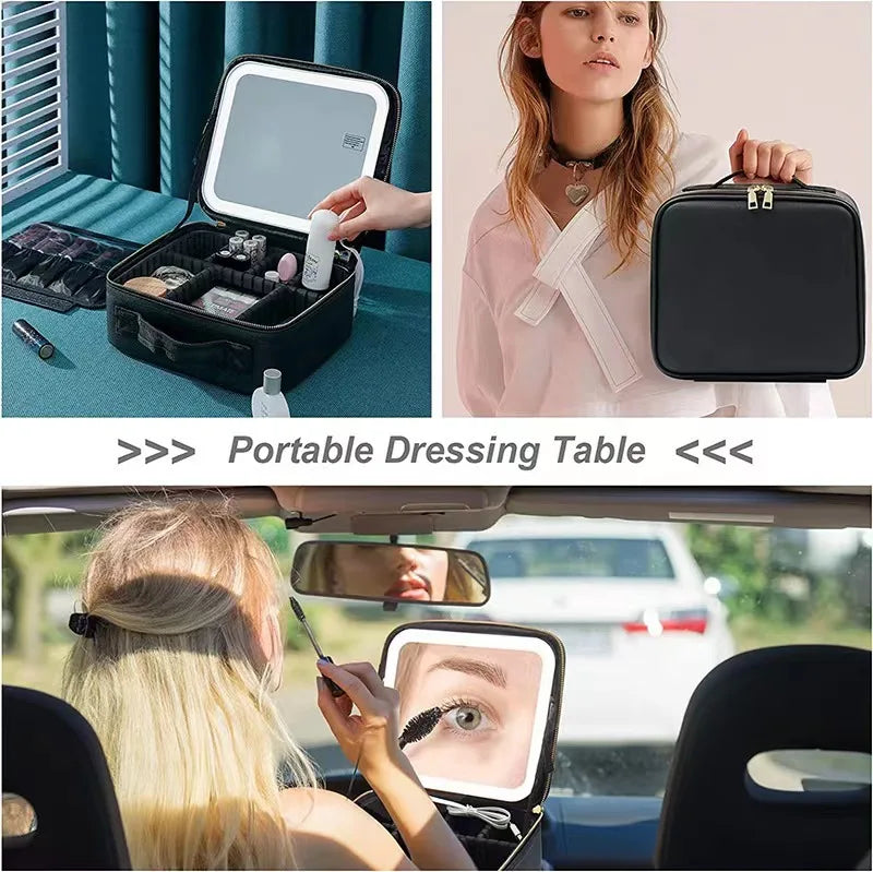 Makeup Vanity Case with LED Mirror – Travel Beauty Box & Cosmetic Organizer