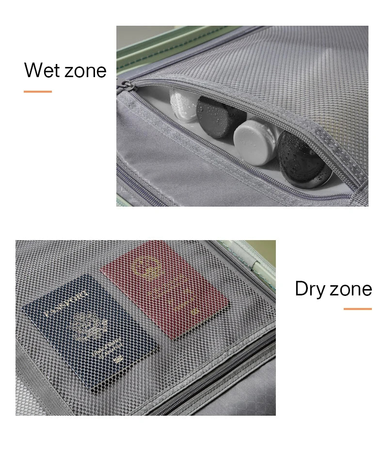 Spacious Interior – Dual compartments with secure straps and mesh pockets