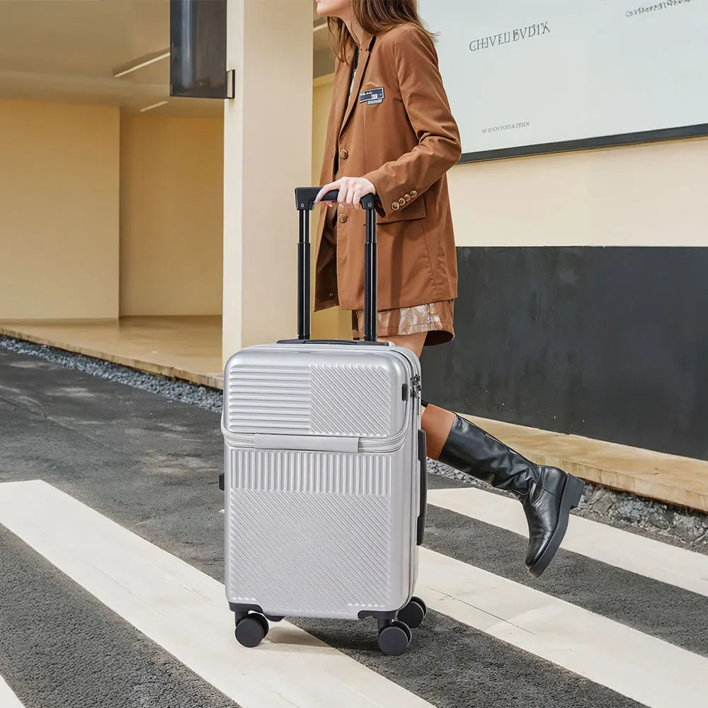20" Front Opening Carry-On Luggage – Multifunctional Trolley with TSA Lock & USB Charging Port