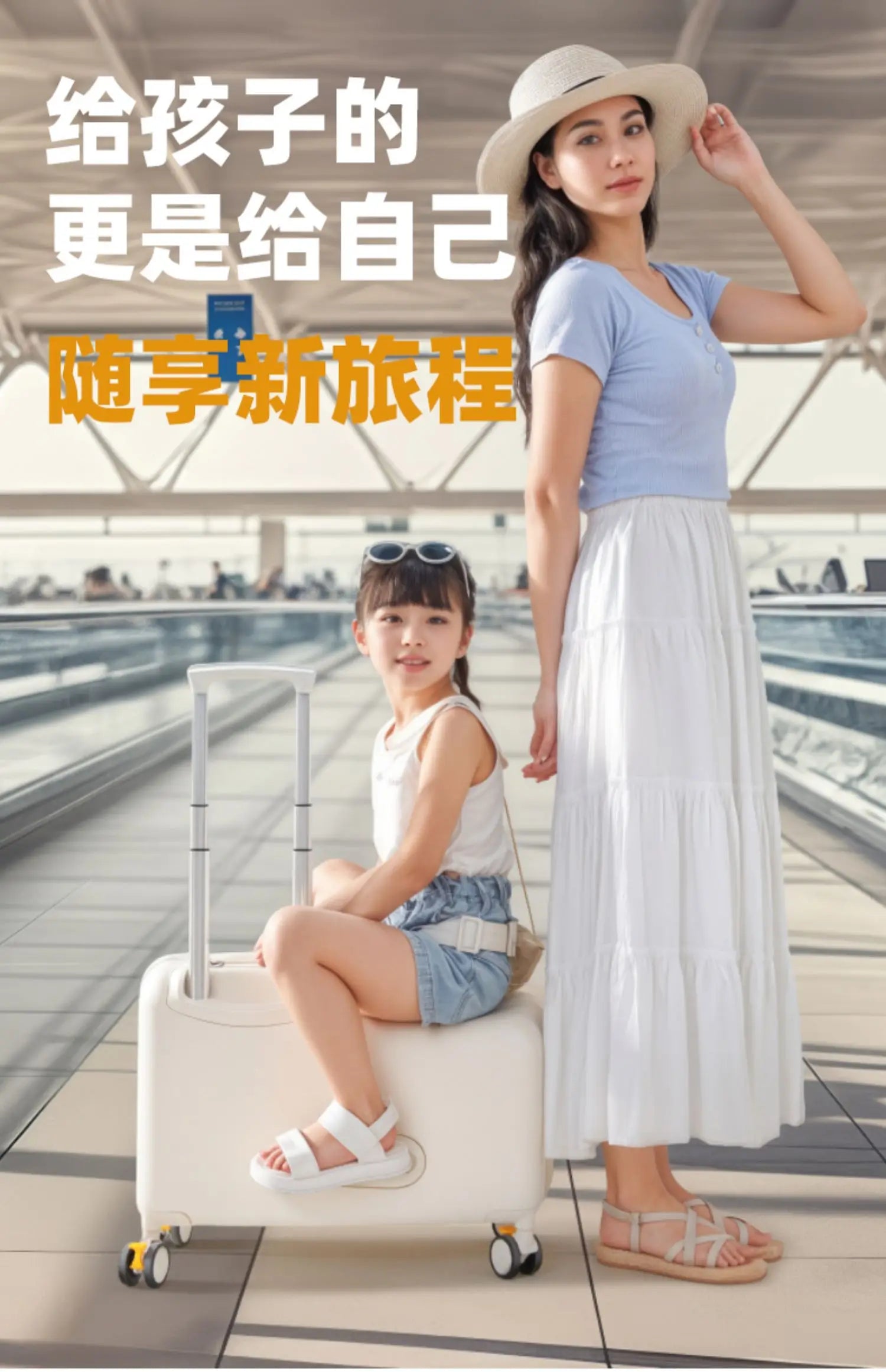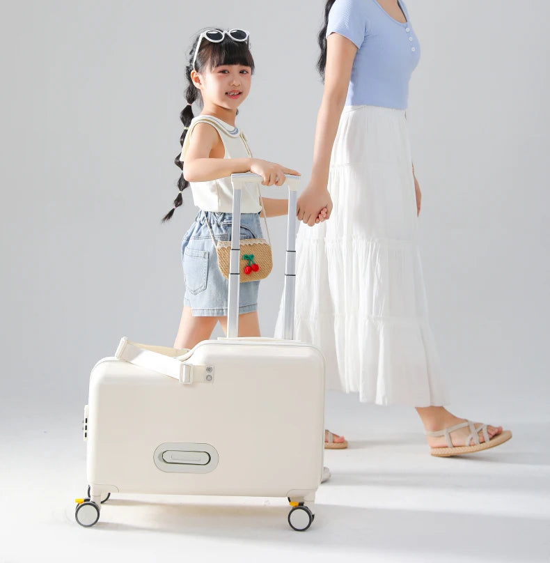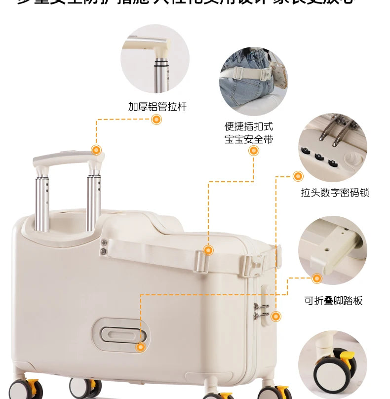 Ride-On Children’s Luggage – Cabin Carry-On Baby Trolley Suitcase with Brake Wheels
