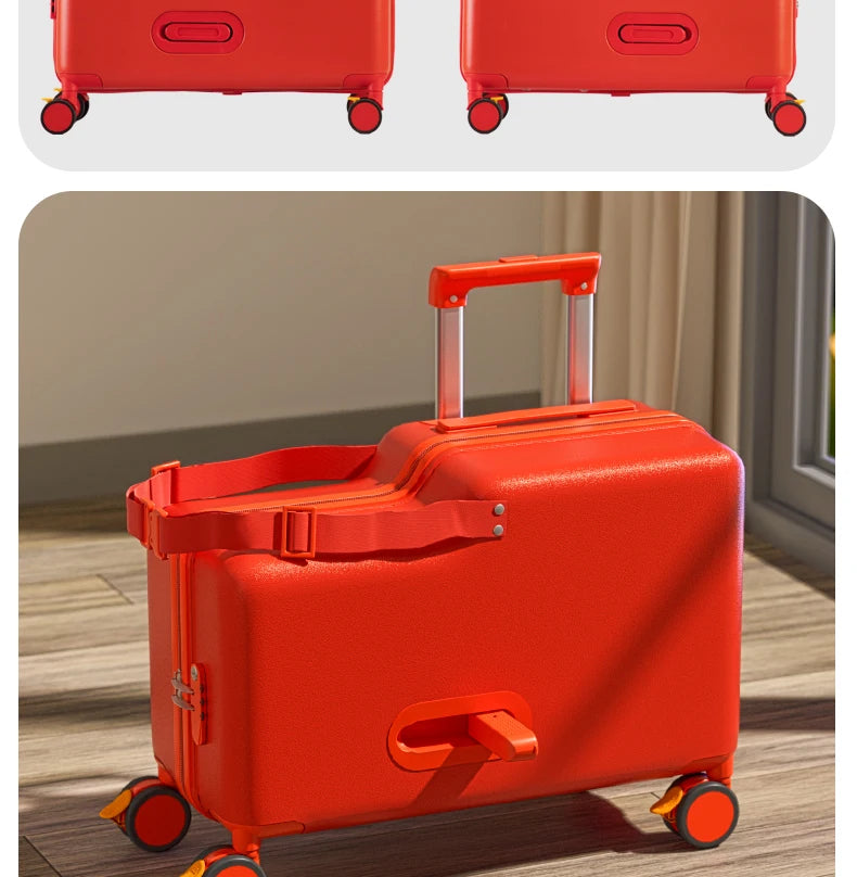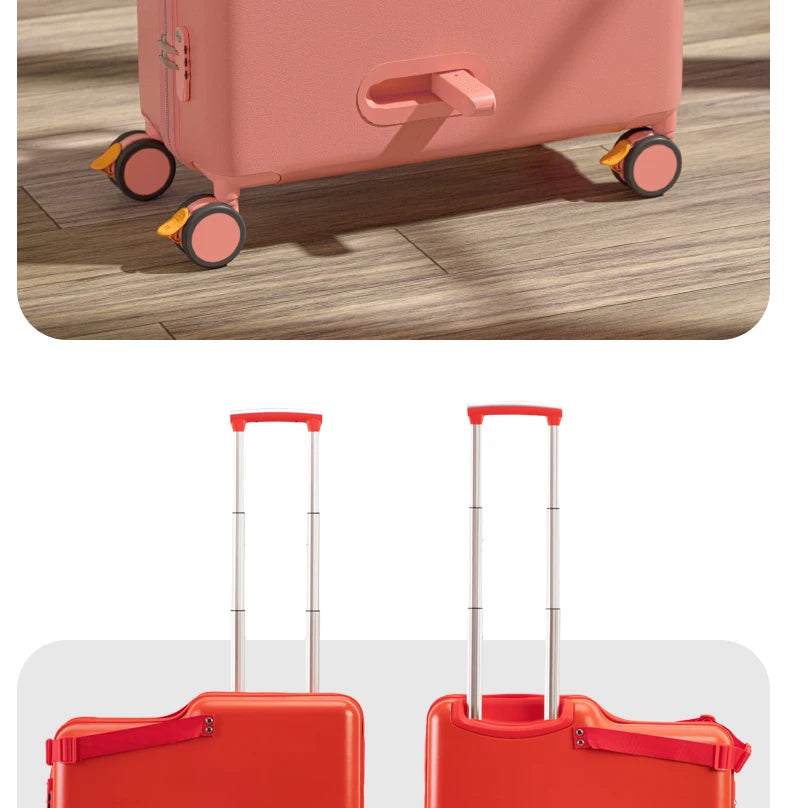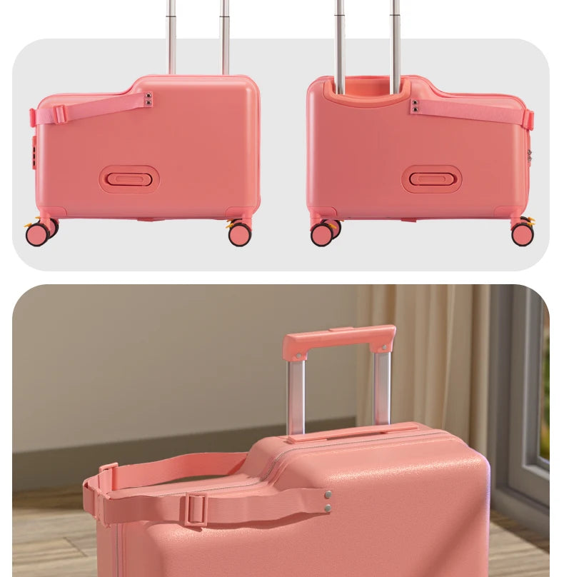 Make traveling fun and stress-free with this Ride-On Children’s Luggage, designed especially for kids. This multi-functional carry-on suitcase not only stores clothes, toys, and essentials but also doubles as a ride-on trolley so children can sit, rest, or glide along while parents pull.