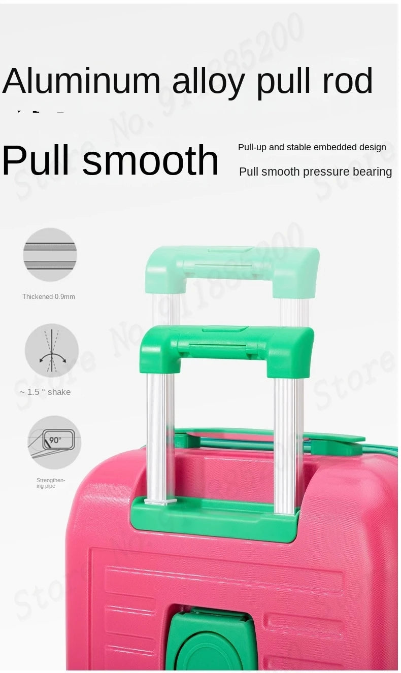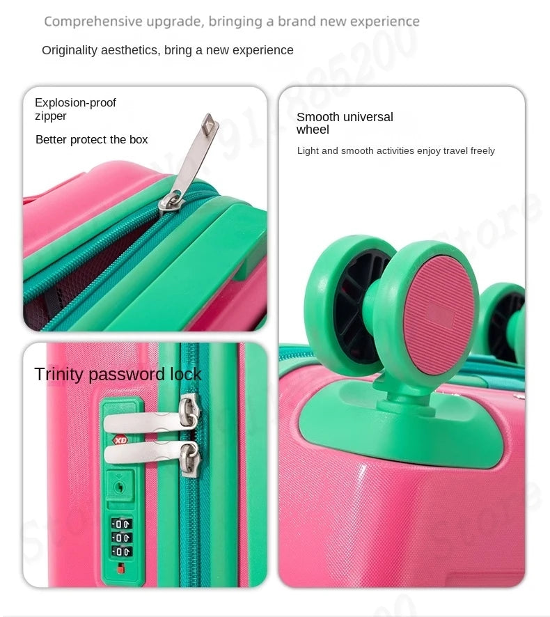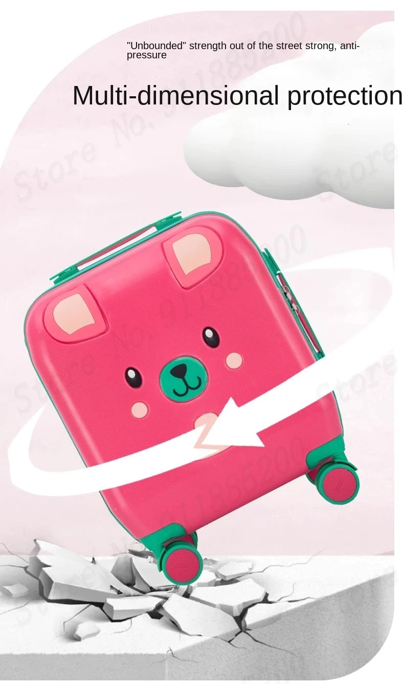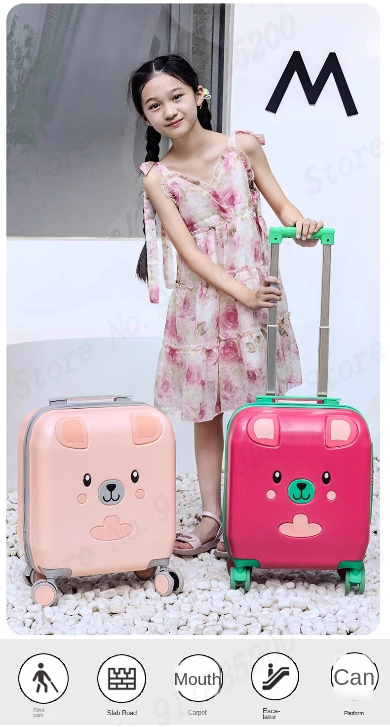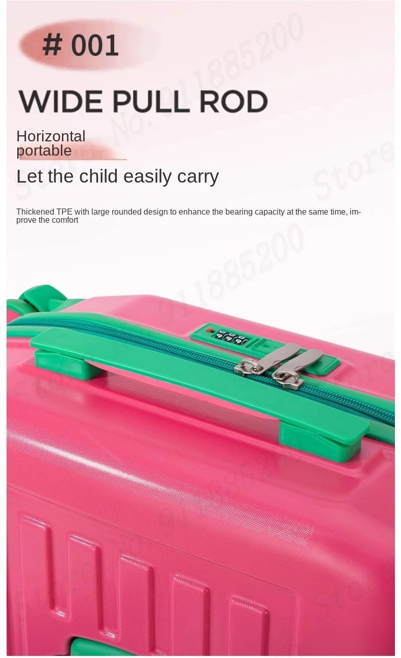 Equipped with mute universal wheels, the trolley case glides smoothly in all directions, while the lightweight yet durable build ensures long-lasting use. The spacious interior keeps clothes, toys, and travel necessities neatly organized, making packing stress-free.
