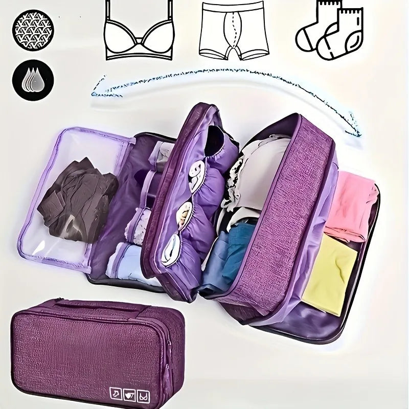 Stay organized at home and on the go with this Portable Multi-Functional Travel Packing Cube. Designed with durable nylon and smooth zippers, this garment bag keeps your underwear, socks, lingerie, and clothing neatly separated while saving valuable suitcase space.