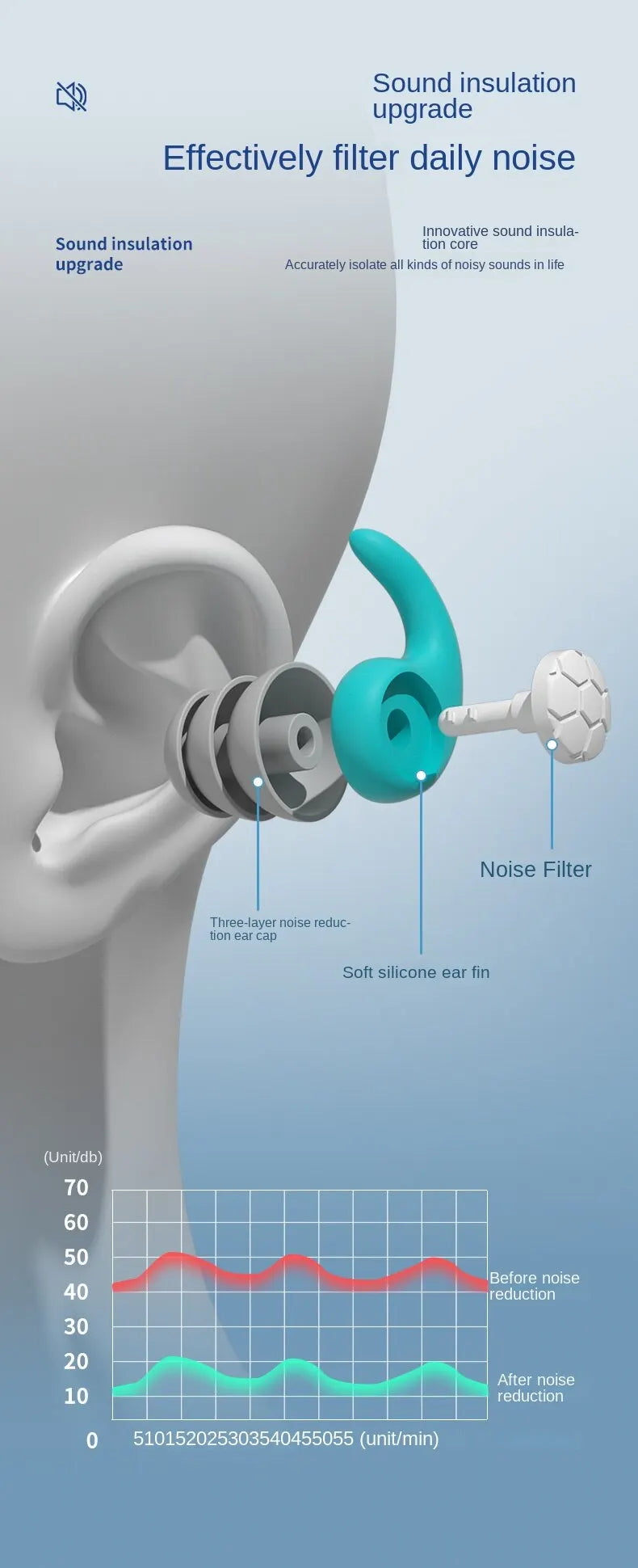 Tri-layered design reduces ambient noise while allowing safe sound levels—perfect for sleep, work, or focus.