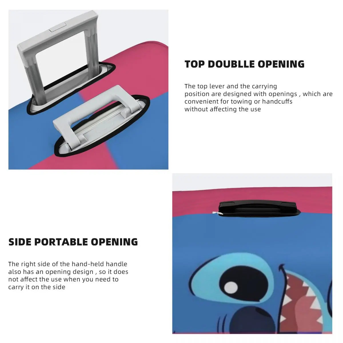 Travel in style while keeping your suitcase safe with this Custom Stitch & Angel Cartoon Luggage Cover. Featuring an adorable and vibrant design of Stitch and Angel, this protective cover keeps your luggage free from scratches, dust, and dirt while adding a fun, eye-catching touch to your travel gear.