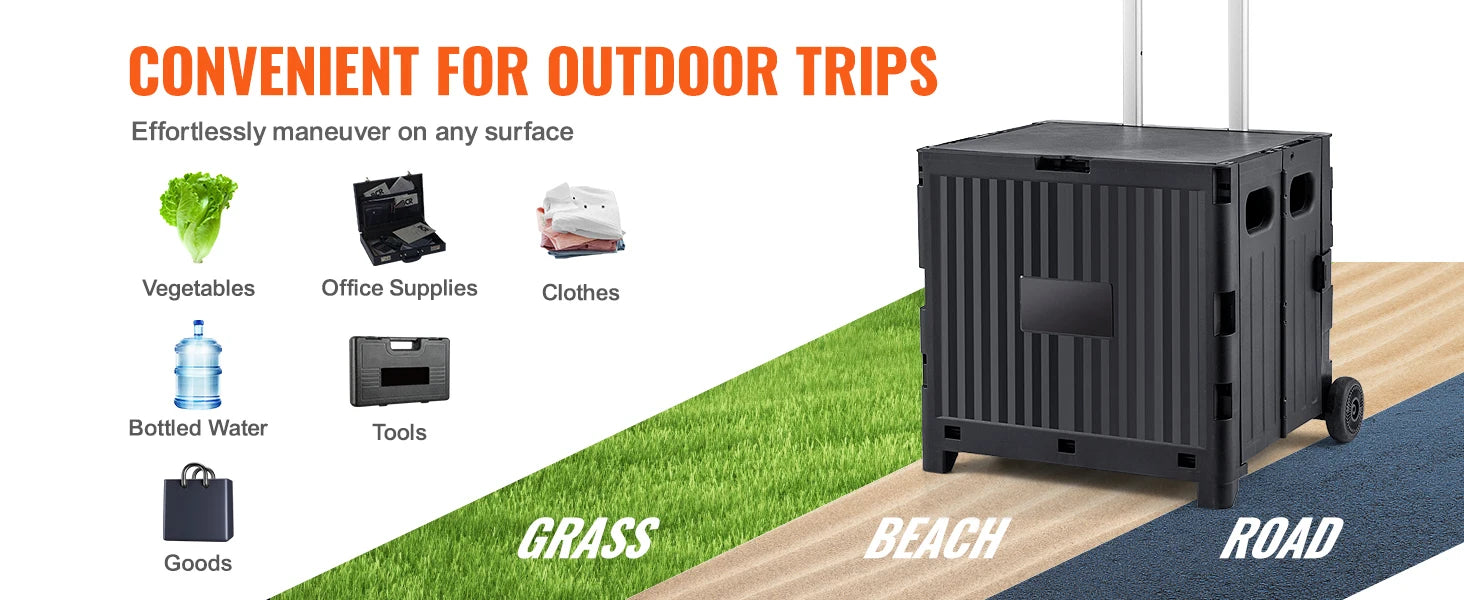 Its folding design makes it space-saving and easy to store in your car trunk, closet, or under the bed when not in use. Built from sturdy and lightweight material, it provides reliable strength while remaining easy to maneuver.