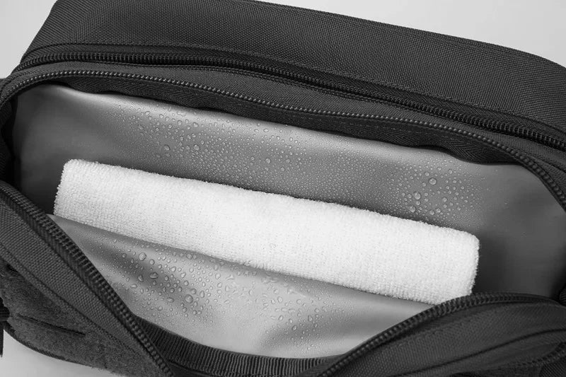 Built with durable, water-resistant material and a Molle pouch design, this men’s shower bag can be used as a waist backpack, belt bag, or travel organizer. Its lightweight, rugged construction makes it perfect for camping, business trips, outdoor adventures, or daily use.