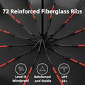 Stay protected from heavy rain, strong winds, and harmful UV rays with this automatic folding umbrella. Built with 72 reinforced fiberglass ribs and a 210T waterproof canopy, this umbrella is designed to withstand intense weather while keeping you dry and safe. Its one-button open/close function makes it effortless to use, even when your hands are full.